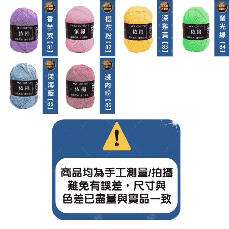 ⚠⚠超商取貨限80顆⚠⚠🔷 商品名稱:依棉牛奶棉線🔷 商品材質:80%腈綸 20%牛奶纖維🔷 商品顏色:共86色(詳情請看規格圖) 🔷 包色: 請於本賣場包色區下單, 請下86的倍數, 蝦店/超商皆最多86顆, 超出請下宅配通/黑貓或大榮貨運🔷 商品尺寸:繩徑約2.5cm,長度約140公尺(約14000公分)🔷 商品重量:約50g(±3g)🔷 商品優勢:線材柔軟細密,多款顏色可選擇🔷 商品用途:適用於編織包包、收納籃、裝飾品、玩偶、鞋子等