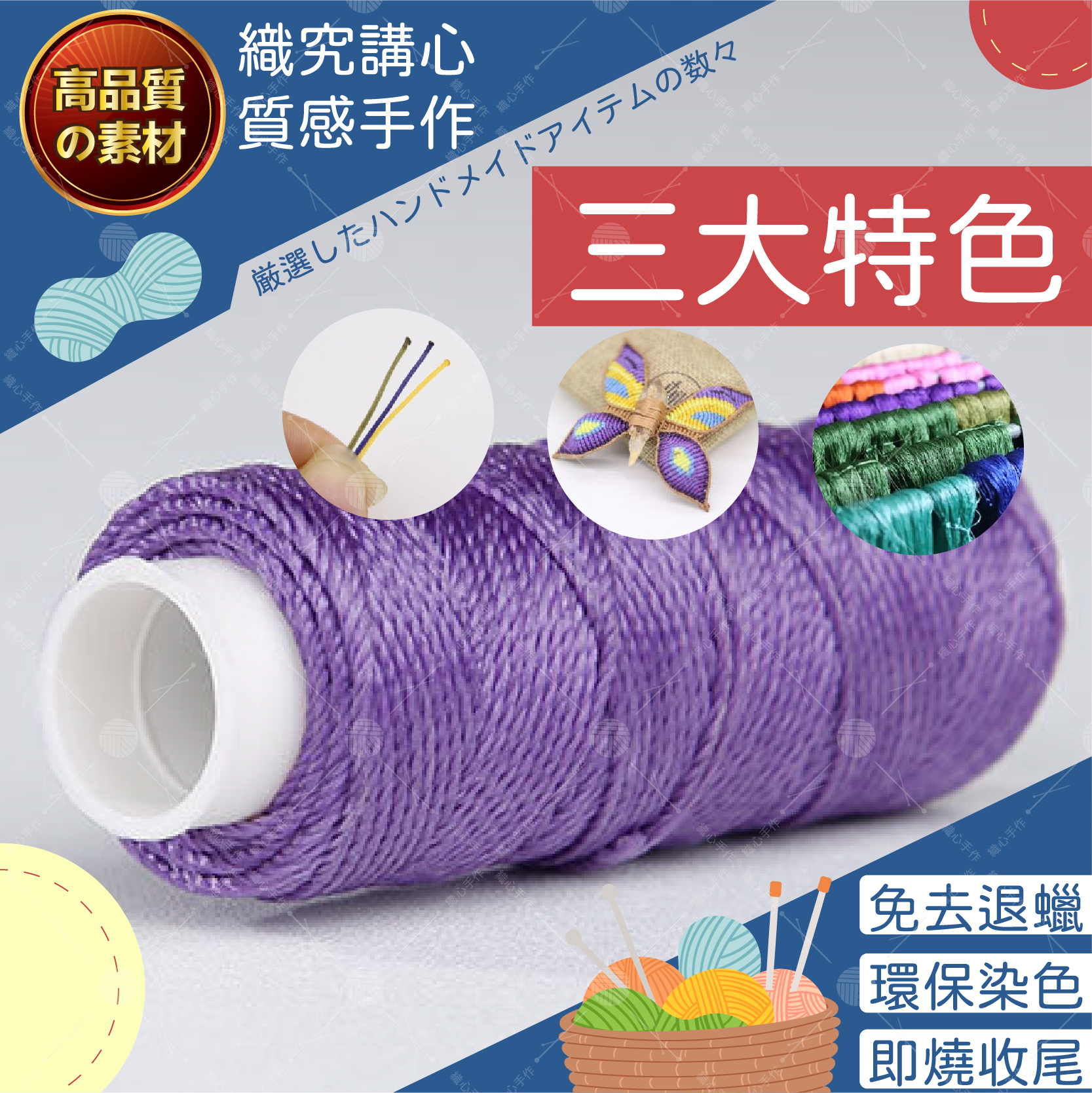 🔷 產品優勢 : 蠟線細膩扎實,編織順手不鬆散,具備防水功能,粗細均勻且結實抗拉