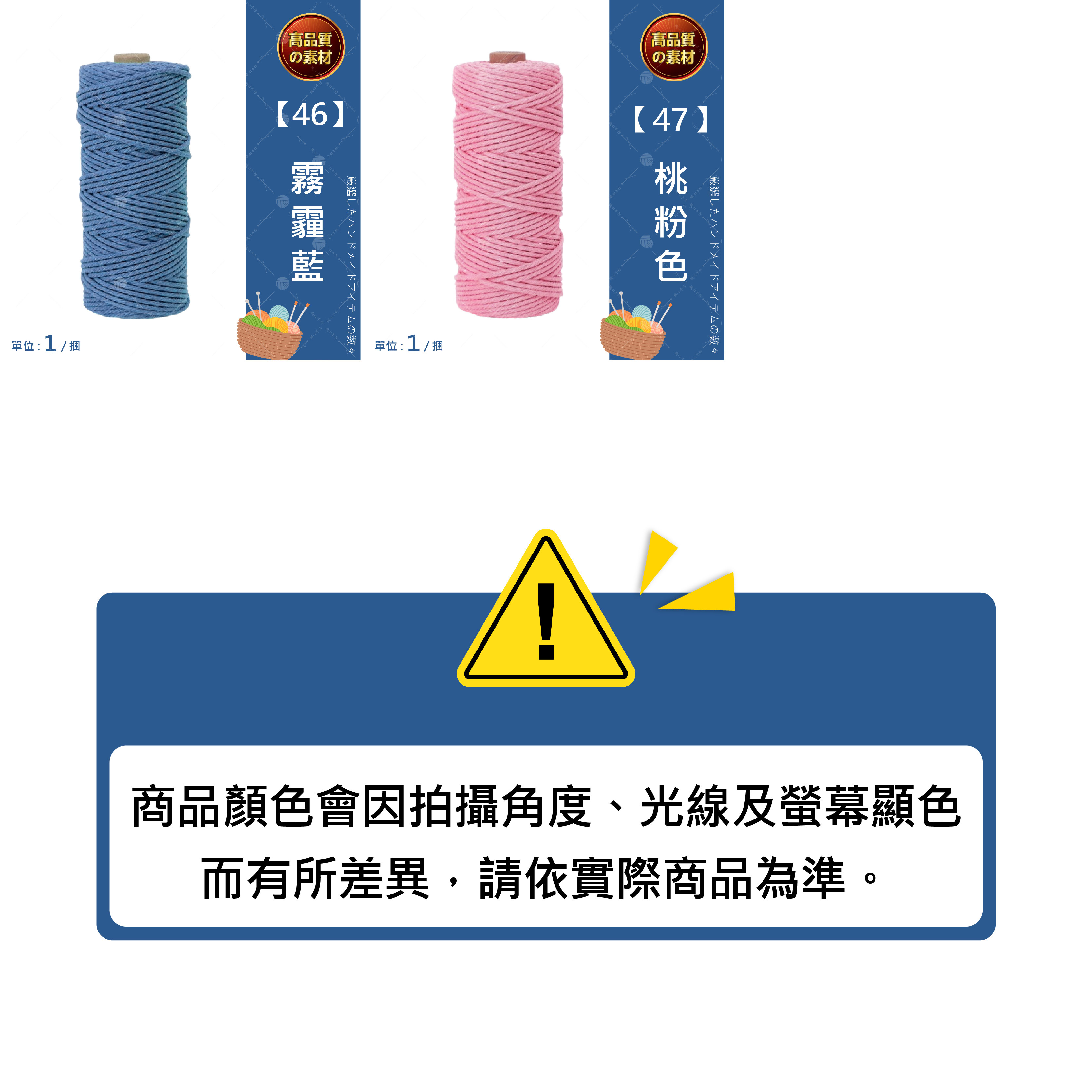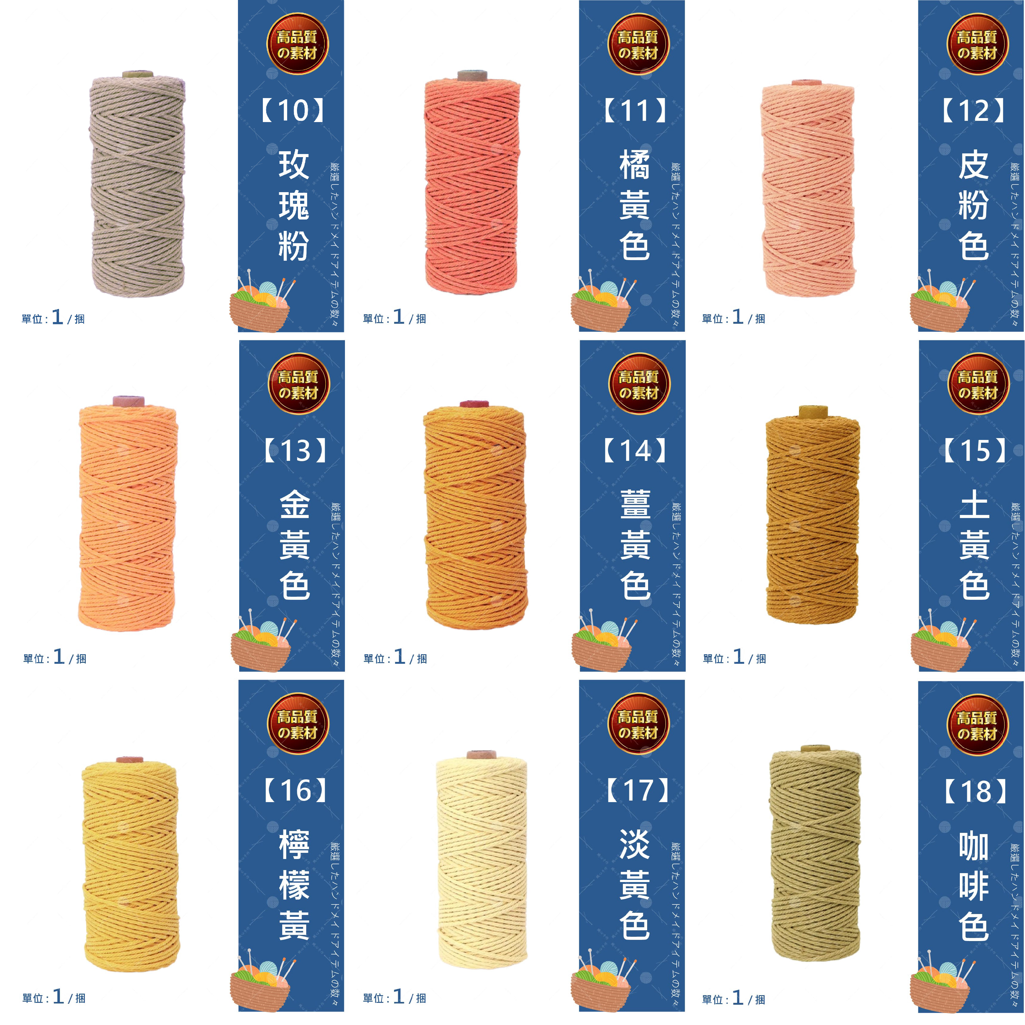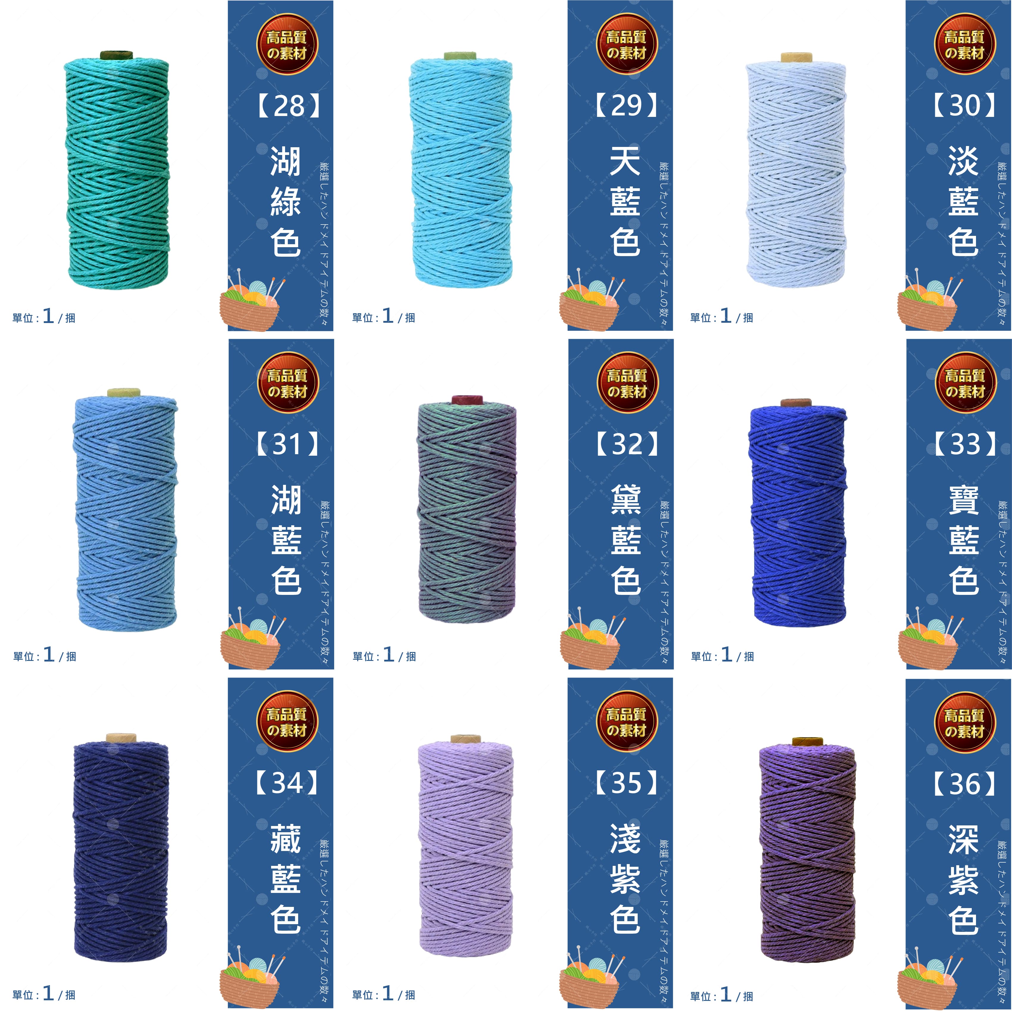 🔷 產品名稱 : 包芯棉線 3mm 20米🔷 產品款式 : 全系列47色(詳見下方規格圖及實體照)🔷 產品尺寸 : 厚度約3mm,每卷長約2000公分🔷 產品重量 : 每卷約70克(±5克)🔷 產品材質 : 棉、滌綸🔷 產品優勢 : 棉線質地細膩而扎實,編織時順手不易鬆散。粗細均勻,具有結實的抗拉性,適用於各種手工編織項目。 🔷 產品用途 : 適用於編織包包、吊籃、掛毯、鍋墊、杯墊等多種手作項目。