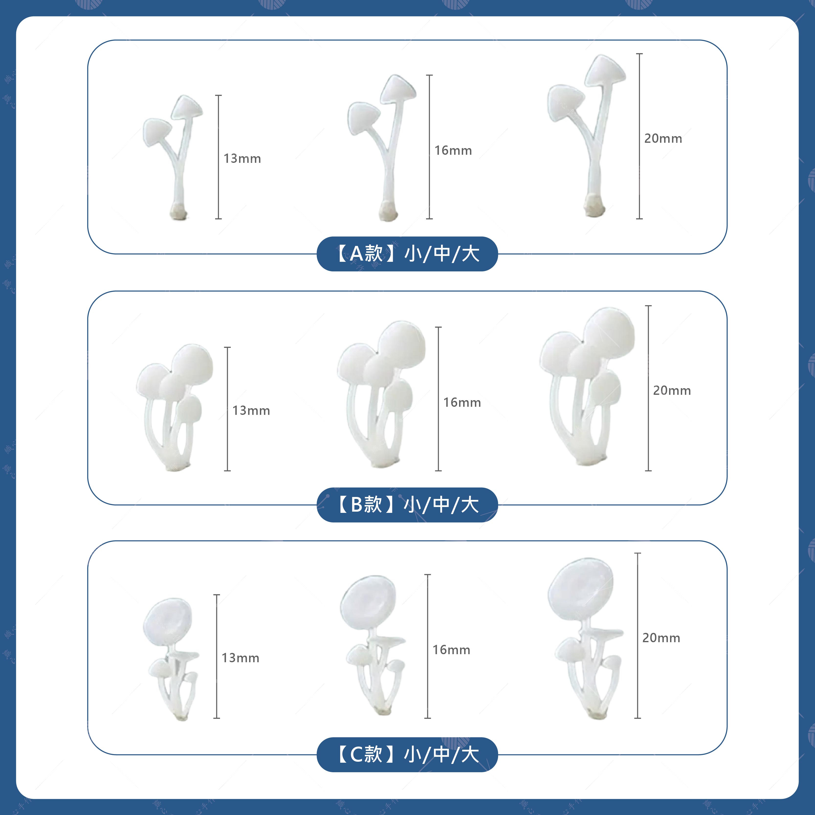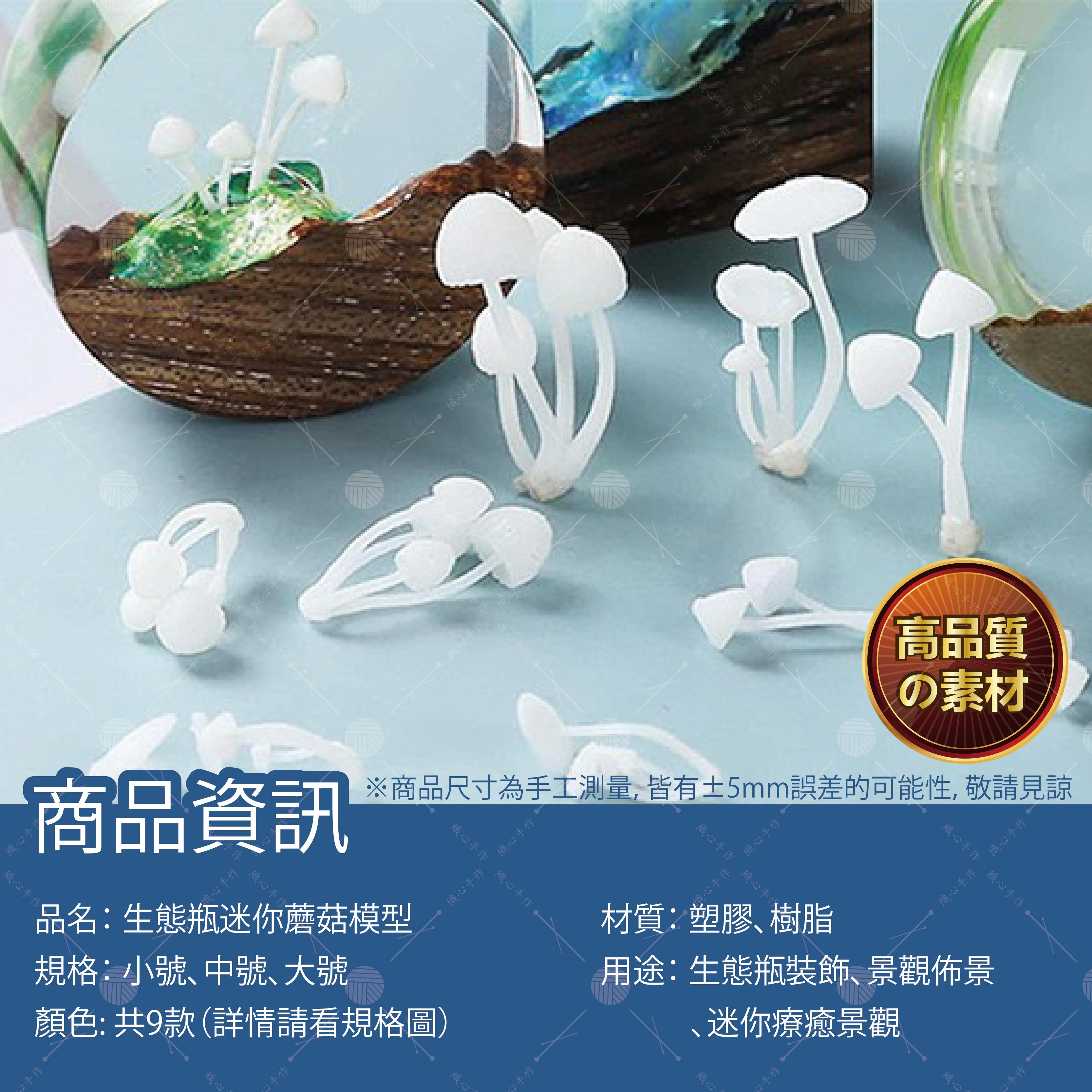 【商品規格】品名:生態瓶迷你蘑菇模型顏色:共9款(詳情請看規格圖)規格:小號、中號、大號材質:塑膠、樹脂用途:生態瓶裝飾、景觀佈景、迷你療癒景觀。