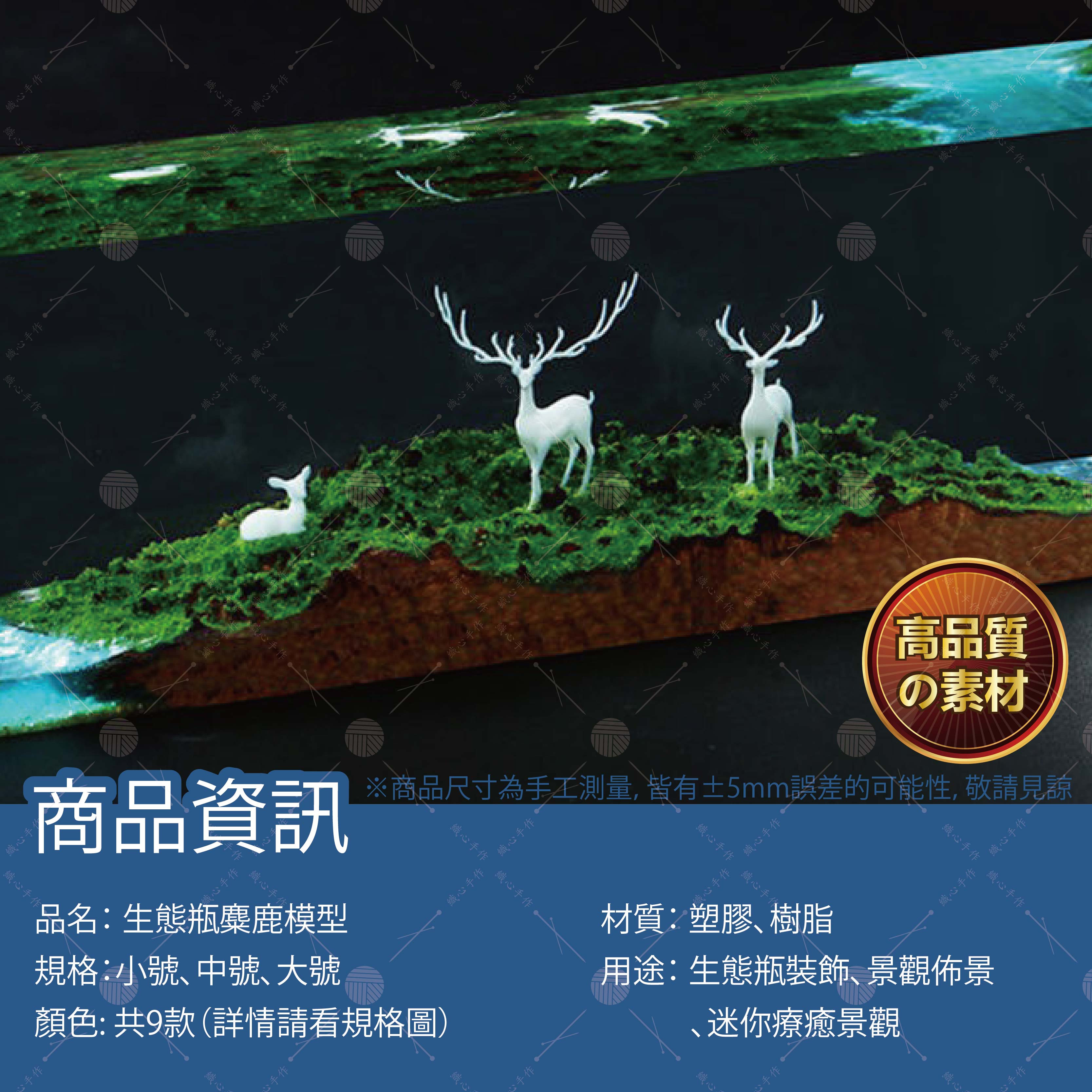 【商品規格】品名:生態瓶麋鹿模型顏色:共9款(詳情請看規格圖)規格:小號、中號、大號材質:塑膠、樹脂用途:生態瓶裝飾、景觀佈景、迷你療癒景觀。