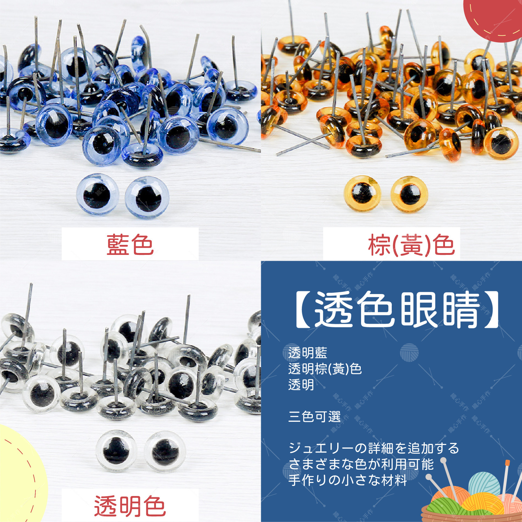 透明眼睛【1對】: 白色眼睛 3mm、白色眼睛 4mm、白色眼睛 5mm、白色眼睛 6mm