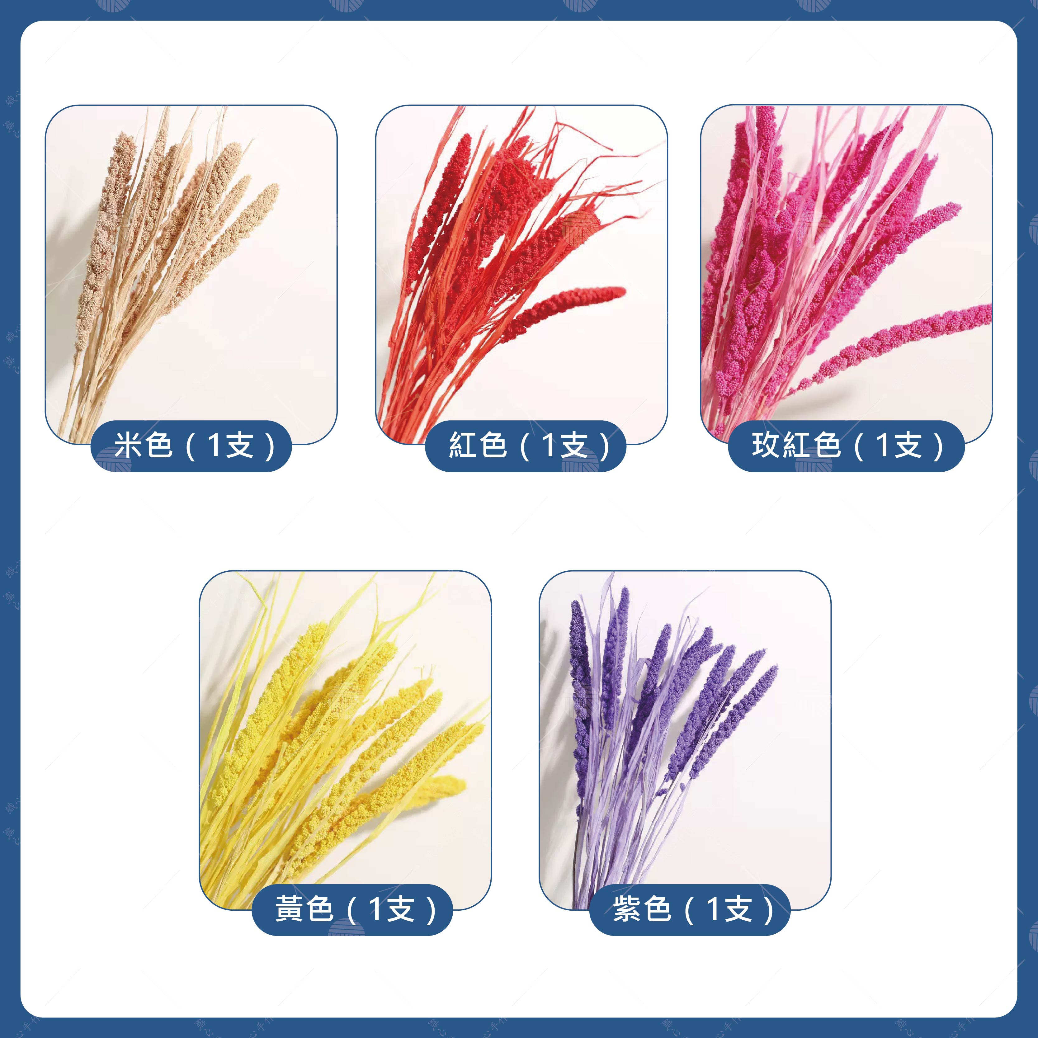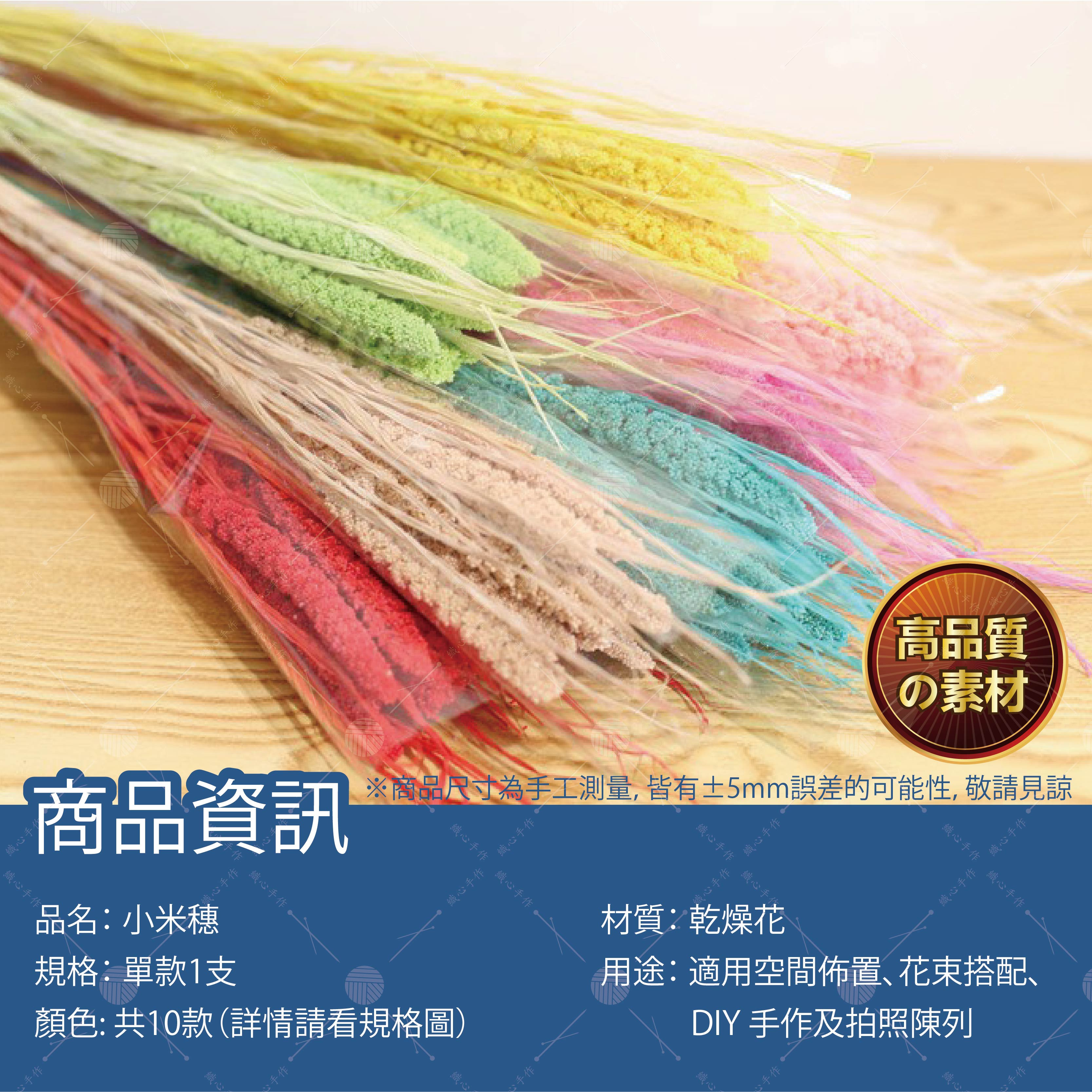 【商品規格】品名:小米穗顏色:共10款(詳情請看規格圖)材質:乾燥花規格:單款1支用途:適用空間佈置、花束搭配、DIY 手作及拍照陳列。