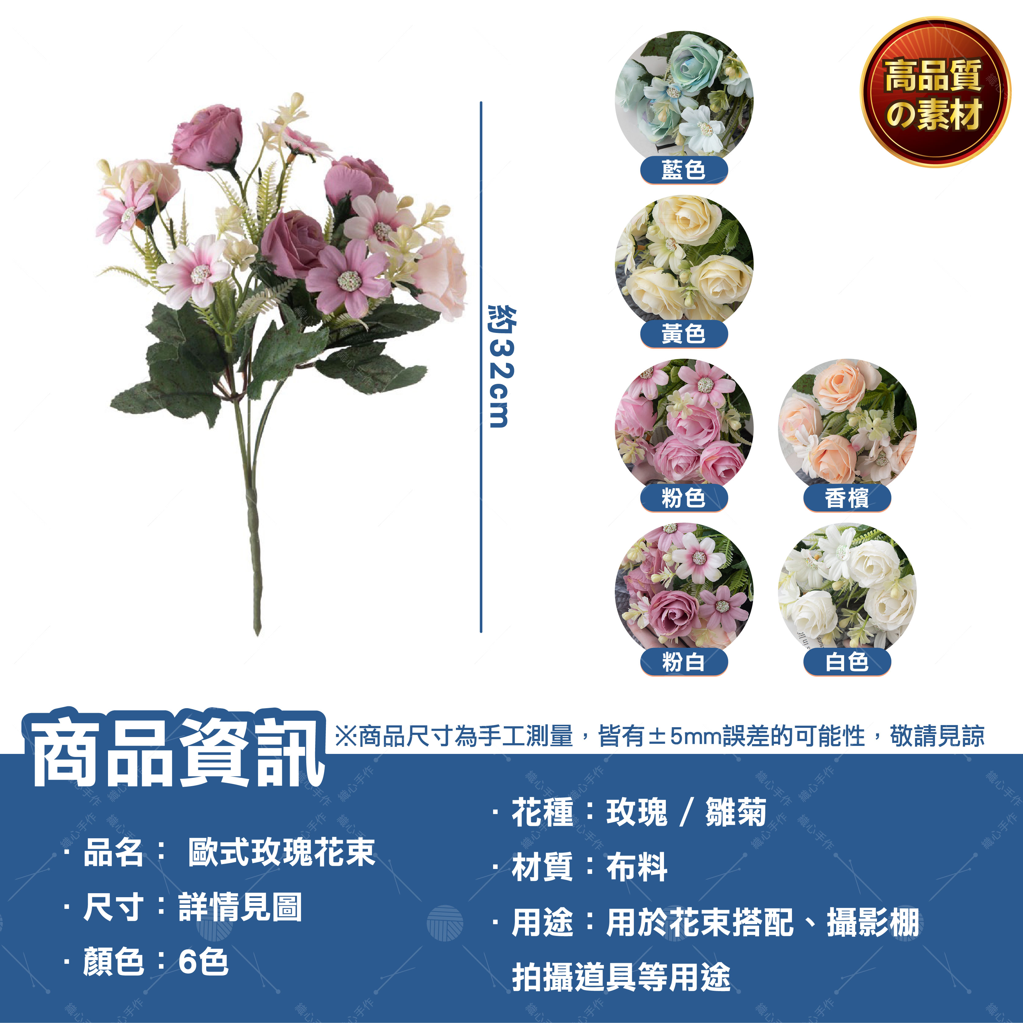 歐式玫瑰花束 玫瑰花束 不凋花 永生花 手作花束 仿真花 假花 人造花 絹花 室內裝飾 油畫薔薇 拍照道具