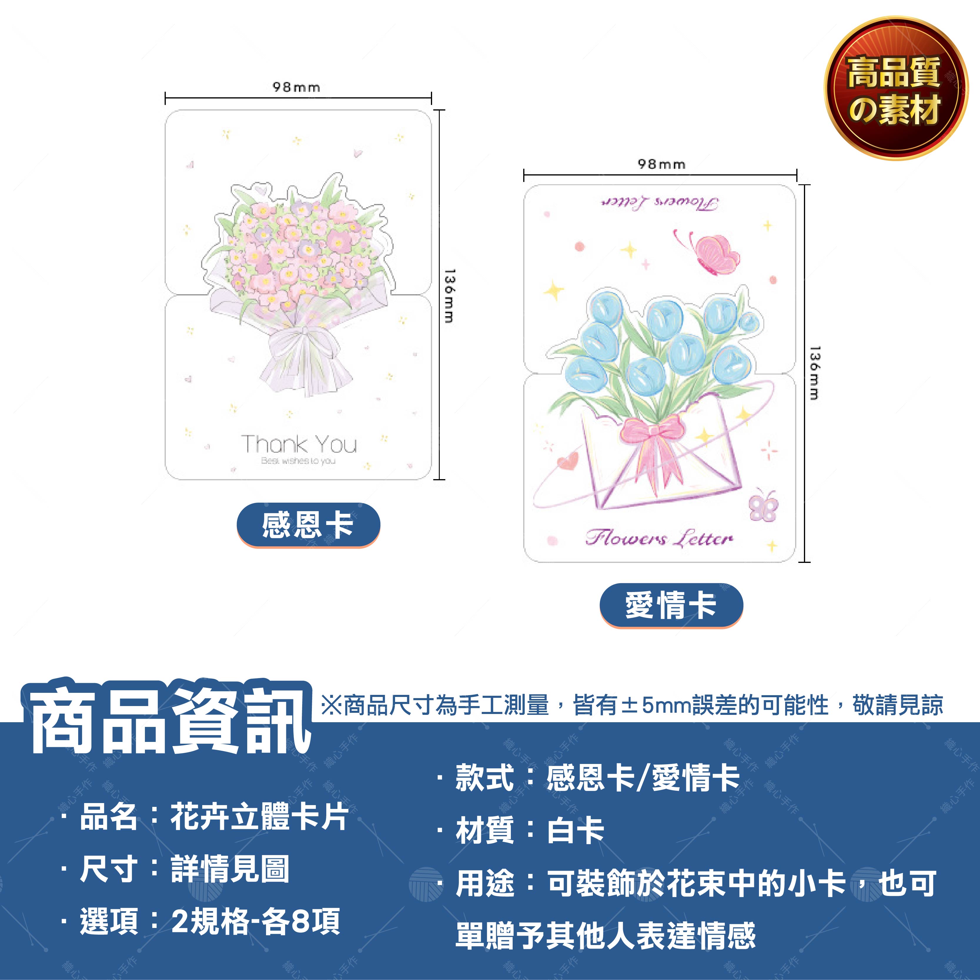 花卉立體卡片 萬用卡片 感謝卡片 立體卡片 花卉卡片 小卡片 生日卡片 質感卡片 紀念日卡片 花束卡片