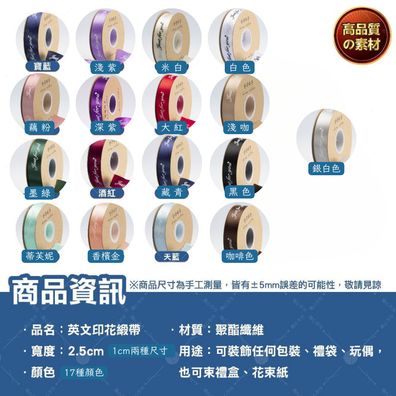 【隔日送達🚀】英文印花緞帶 緞帶 禮盒包裝緞帶 印花緞帶 緞帶蝴蝶結 花束緞帶 1cm 2.5cm英字緞帶 蝴蝶結 裝飾