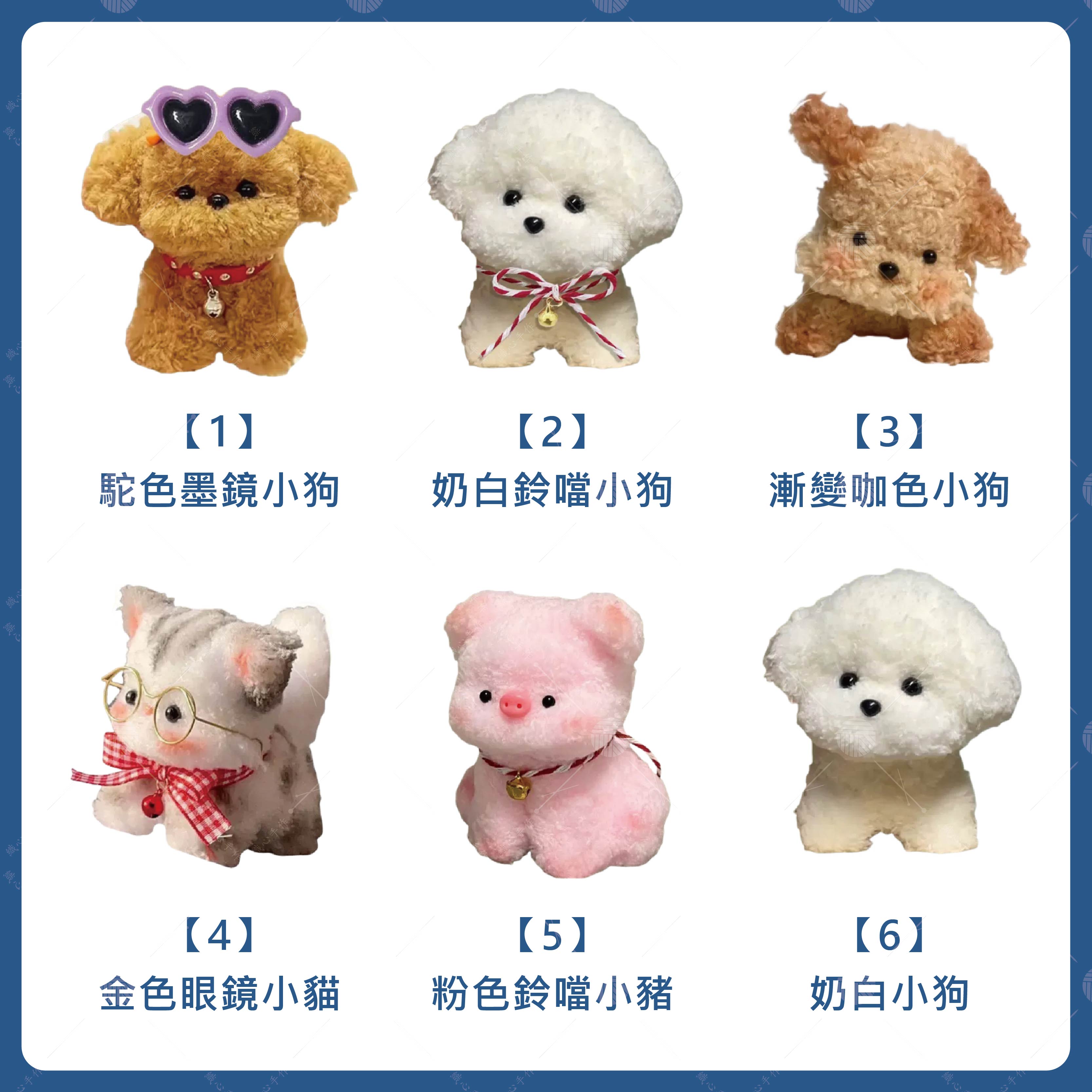 /金色眼鏡小貓/粉色鈴噹小豬/奶白小狗