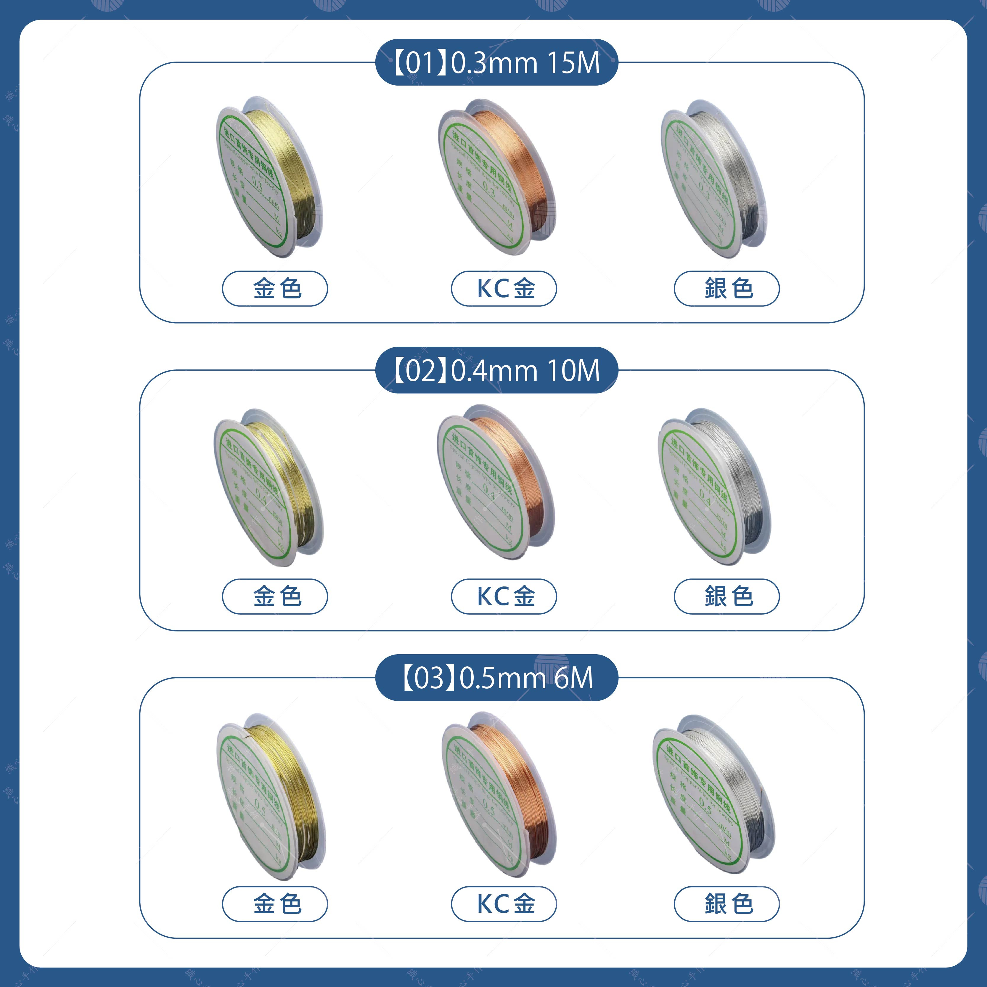 【商品規格】品名:銅絲線顏色:共9款(詳情請看規格圖)材質:銅規格: 0.3/0.4/0.5mm用途: 適合手作飾品、花藝綁線、模型、工藝。